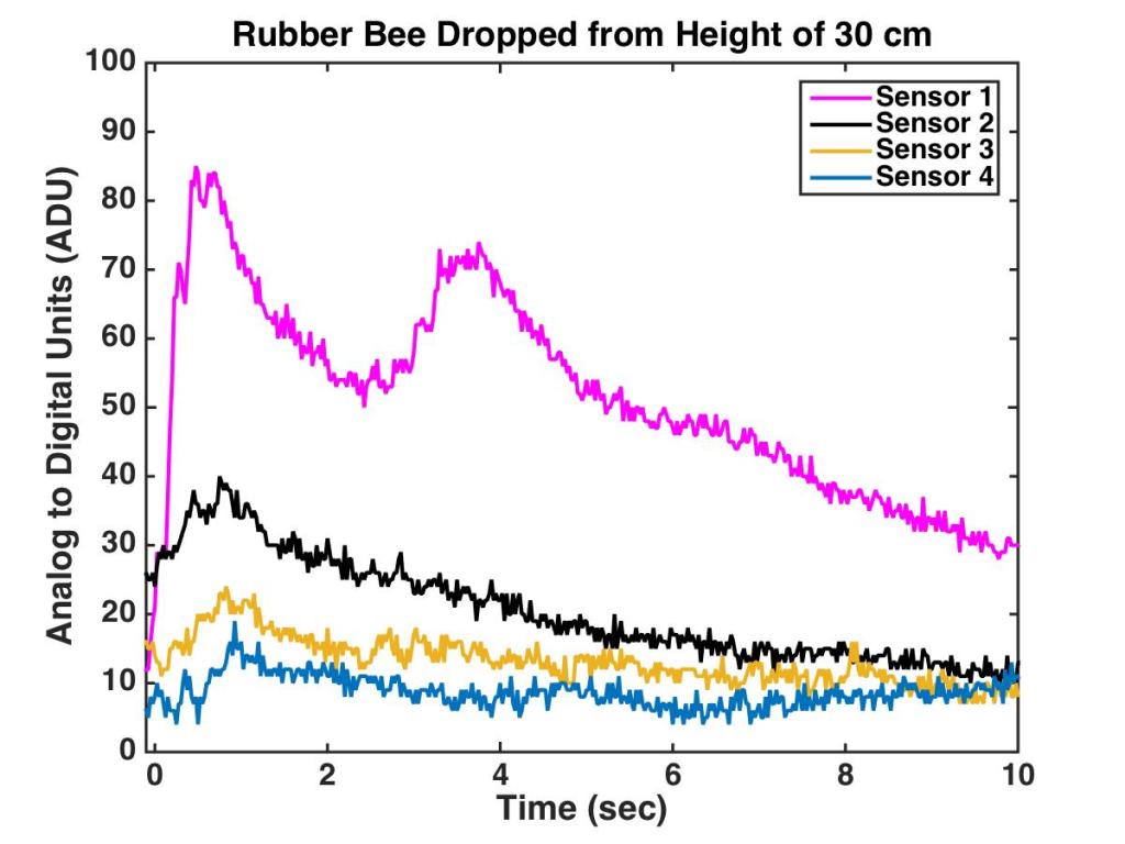 Animals, including insects, are an important part of our world but are often threatened by human activities. Bees often fly into swimming pools and drown. Our goal was to develop a sensor system that could detect a drowning bee, determine its location, and rescue it. As a first step, the purpose of this project was to study whether water sensors at the edge of a pool can be used to detect the waves made by a drowning bee. We used a robotic, rubber bee that could mimic a live bee struggling in the water. We found that a drowning bee created a unique signature in the wave sensor data, compared to wind or a leaf falling into the water. We are currently investigating whether these low-cost sensors can be installed in pools in order to notify owners of animals in distress.